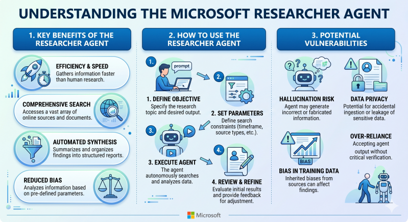 - While powerful, the Microsoft Researcher Agent is not without risks that users must proactively manage: