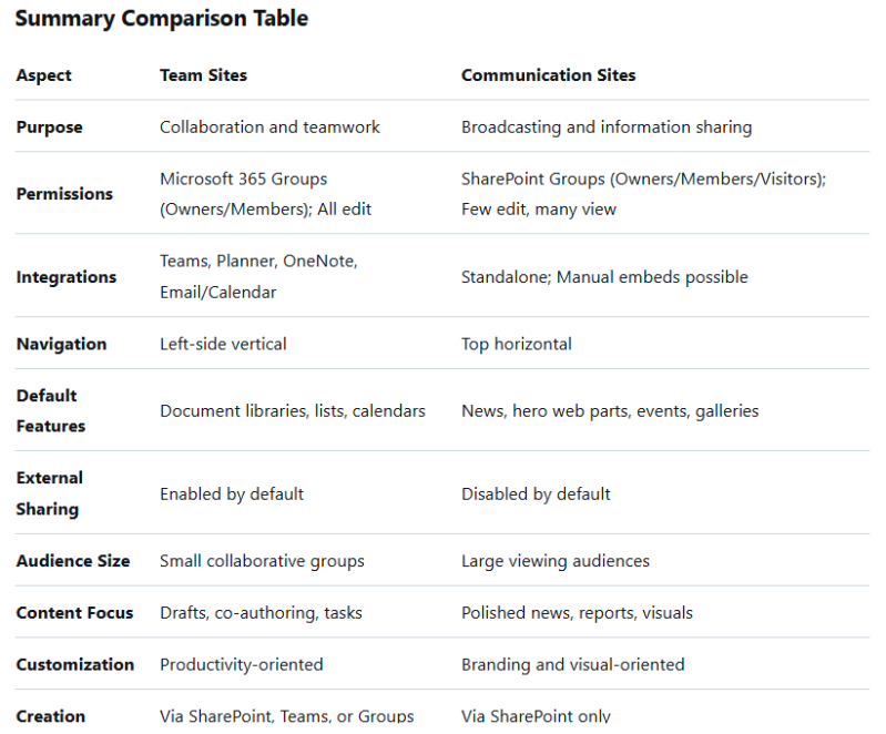 This instructional document provides a comprehensive comparison based on official Microsoft documentation and expert insights. It covers purpose, features, permissions, integrations, and more, with practical guidance on when to use each. By the end, you'll be equipped to create and manage these sites effectively.