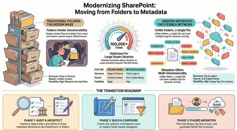 This transition is not just cosmetic — it's foundational for modern, intelligent document management in SharePoint Online. Start with one painful library, measure success (search time, user feedback, metadata fill rate), then scale.